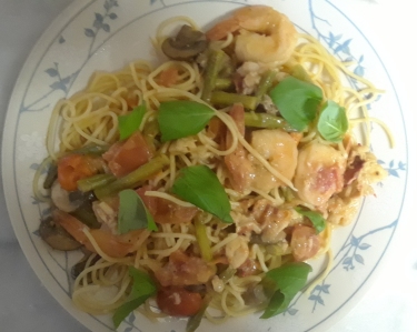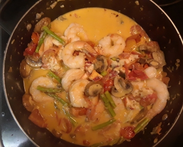 - When satisfied, add your cooked lobster and shrimp, and stir until it is