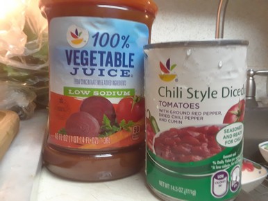 and simmered with a can of Chili Style Diced Tomatoes I found at the store