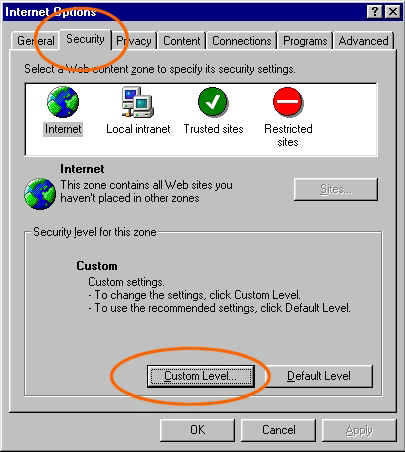 the 'Security' tab in the resulting window. Then click the 'Custom Level'