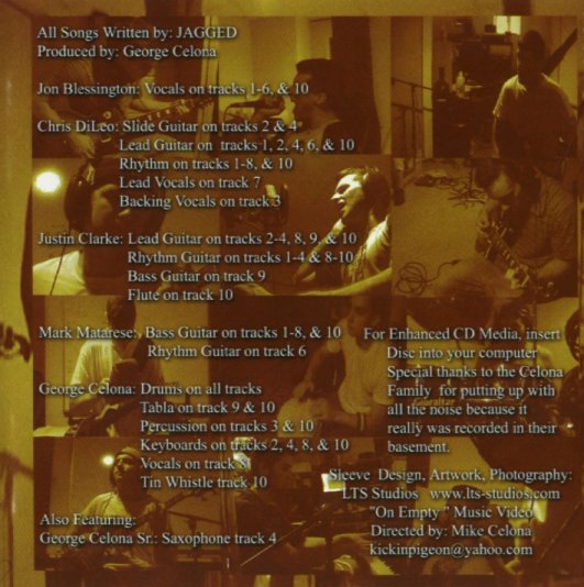 The musical band Jagged (Jon Blessington, Chris DiLeo, Justin Clarke, Mark Matarese, and George Celona) have released their first full length album. This CD represents the result of six months of writing and recording.